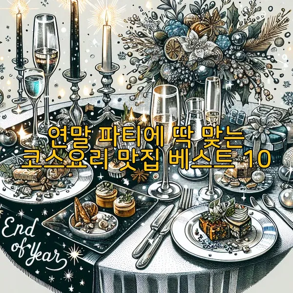 연말 파티는 특별한 순간을 나누는 자리입니다. 그래서 고르는 음식도 그만큼 중요하죠. 이번에 소개해 드린 코스요리 맛집들은 각각의 독창적인 매력으로 여러분의 연말을 더욱 빛나게 할 것입니다. 맛뿐만 아니라 분위기와 서비스까지 살펴보면, 완벽한 식사를 즐길 수 있겠지요. 이곳에서 친구들과, 혹은 소중한 사람과 특별한 추억을 만들어보시길 바랍니다. 이제 여러분의 연말을 더욱 특별하게 만들어줄 그곳을 찾으러 떠나볼 시간입니다.